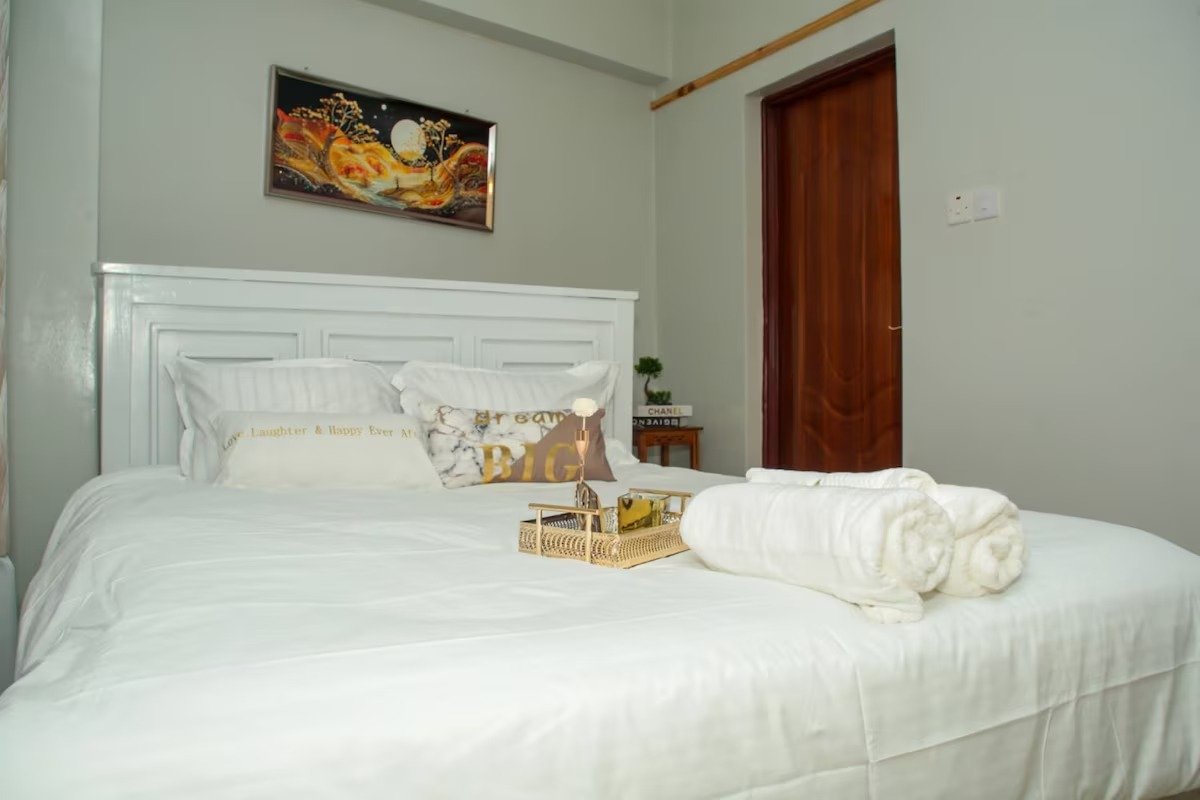 Welcome to Luxe Vibes, your stylish sanctuary in Nakuru! Nestled in a serene neighborhood, our cozy apartment features a spacious all ensuite bedrooms, a fully equipped kitchen, Washing machine & a chic living area perfect for unwinding after exploring. Just mins from attractions like Lake Nakuru National Park & Hyrax Hill, it offers the ideal blend of adventure & relaxation. Enjoy essential amenities, including Wi-Fi and a flat-screen TV. Xperience the Luxe Vibes difference— See you soon!