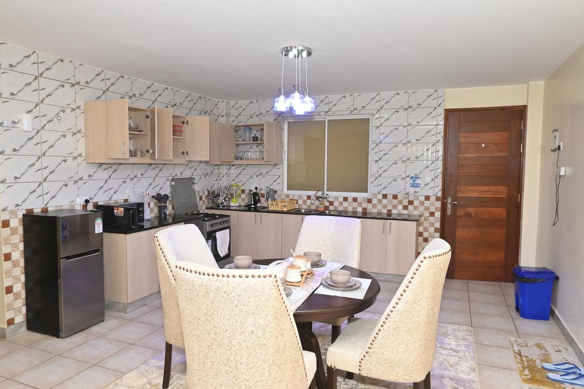 This inviting apartment  in Nanyuki offers a blend of modern comfort and local charm. Featuring bright, airy rooms, a spacious living area, and a fully-equipped kitchen, it’s perfect for relaxing after exploring. Enjoy panoramic views of Mount Kenya from the balcony. Centrally located in Nanyuki town, it provides easy access to Nanyuki’s attractions, markets, malls and dining spots. Ideal for a serene yet convenient getaway.