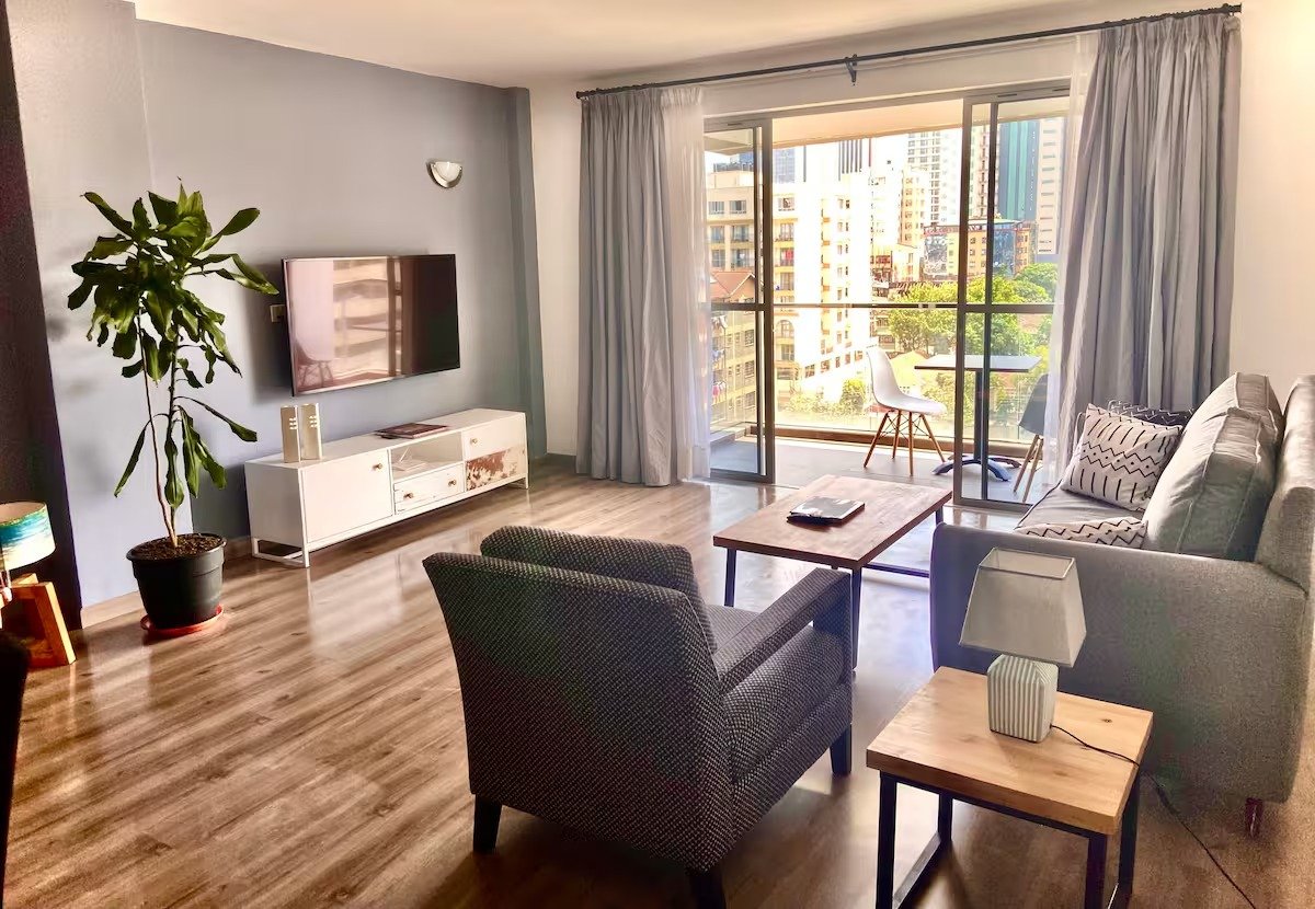 A wonderful spacious luxurious 2br Tastefully furnished and elegant 2 bedroom apartment in the heart of Parklands bordering Westlands. Newly furnished end March 2022. Very spacious and luxury amenities. The apartment has full back up generator and 20MBS Wifi. The balcony invites for beautiful views and zipping of a good glas of wine. Apartments are UN approved