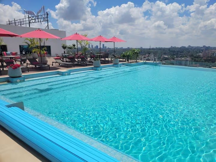 Enjoy your stay in our luxury 2 Bedroom Apartment with heated rooftop Pool, 180° Gym, Sauna and Squash.