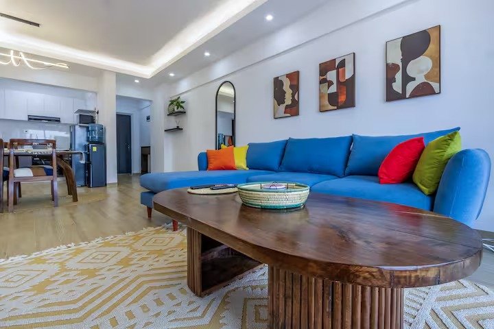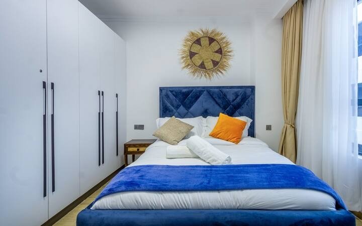 Bright, spacious, modern 2 bedroom apartment with incredible sunset views. Luxury furnishings. King bed (ensuite), Queen bed (separate bathroom). Utility. Washer-dryer. Wifi. HD TV w/sound system. Fully serviced, cleaning included.