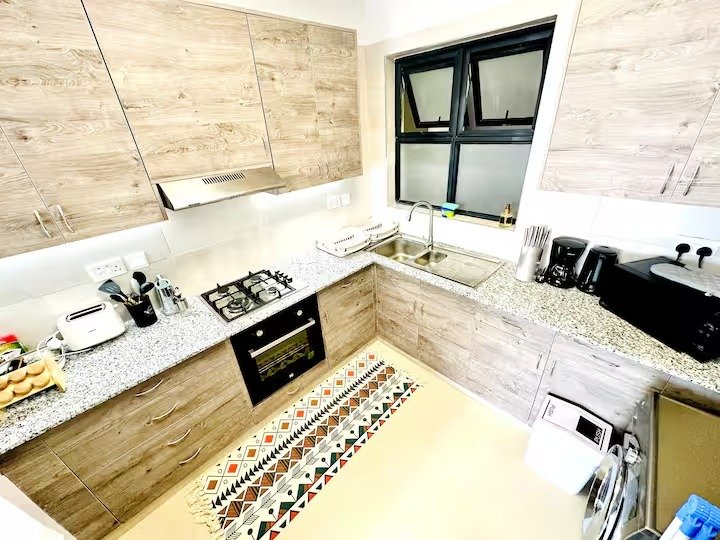 Our luxurious serviced 2 bed 2 bath apartment in Nairobi’s Westland with premium furnishings, branded high-end appliances, POWER BACKUP, FAST WIFI, Housekeeping, stunning views, 24-hour security, GYM, SWIMMING POOL, lounge area & free parking. Conveniently located near top dining, shopping & entertainment destinations. Experience peaceful comfort with breathtaking views and premium amenities. Book your stay today for a luxurious experience in the heart of Nairobi!