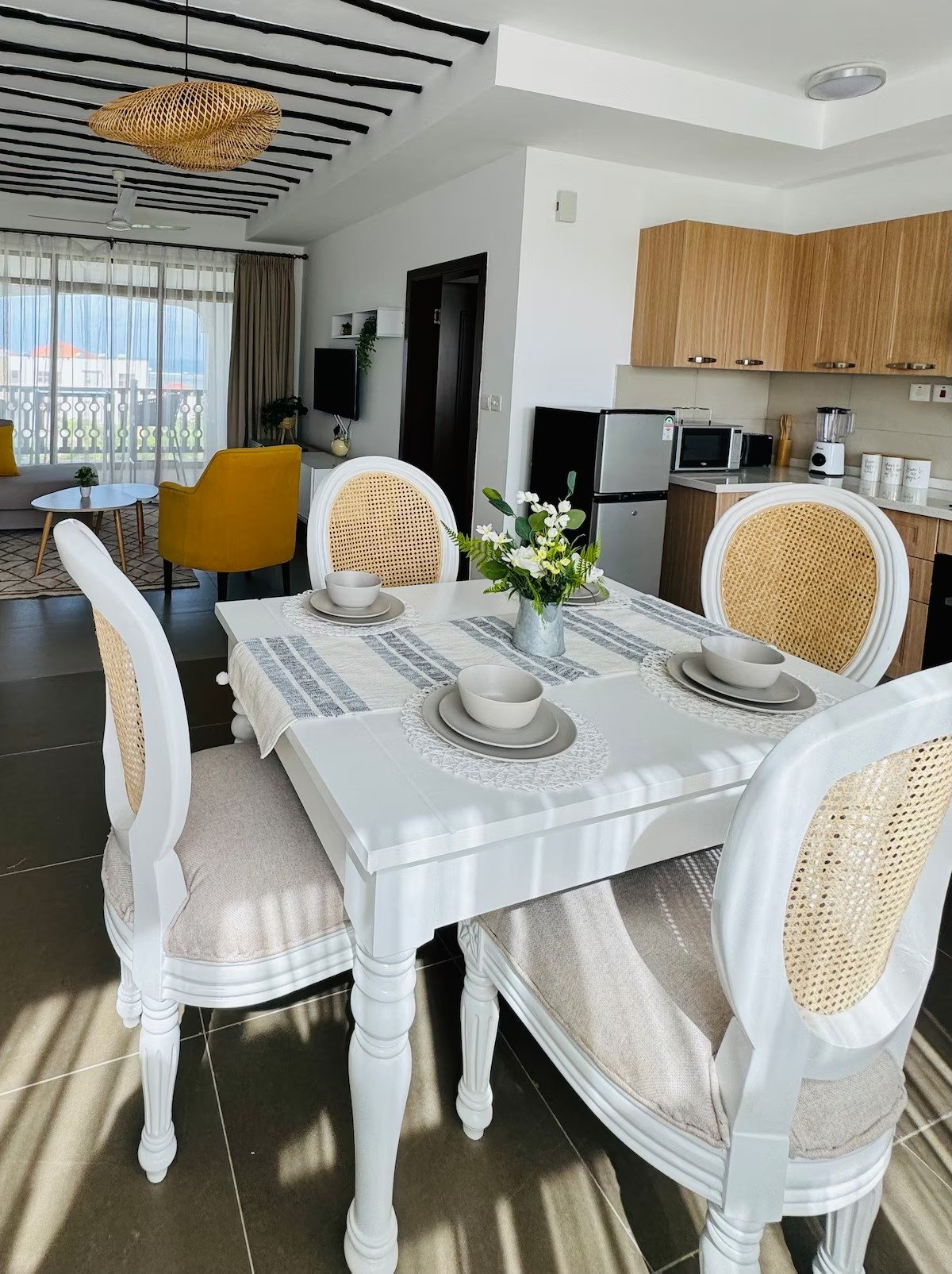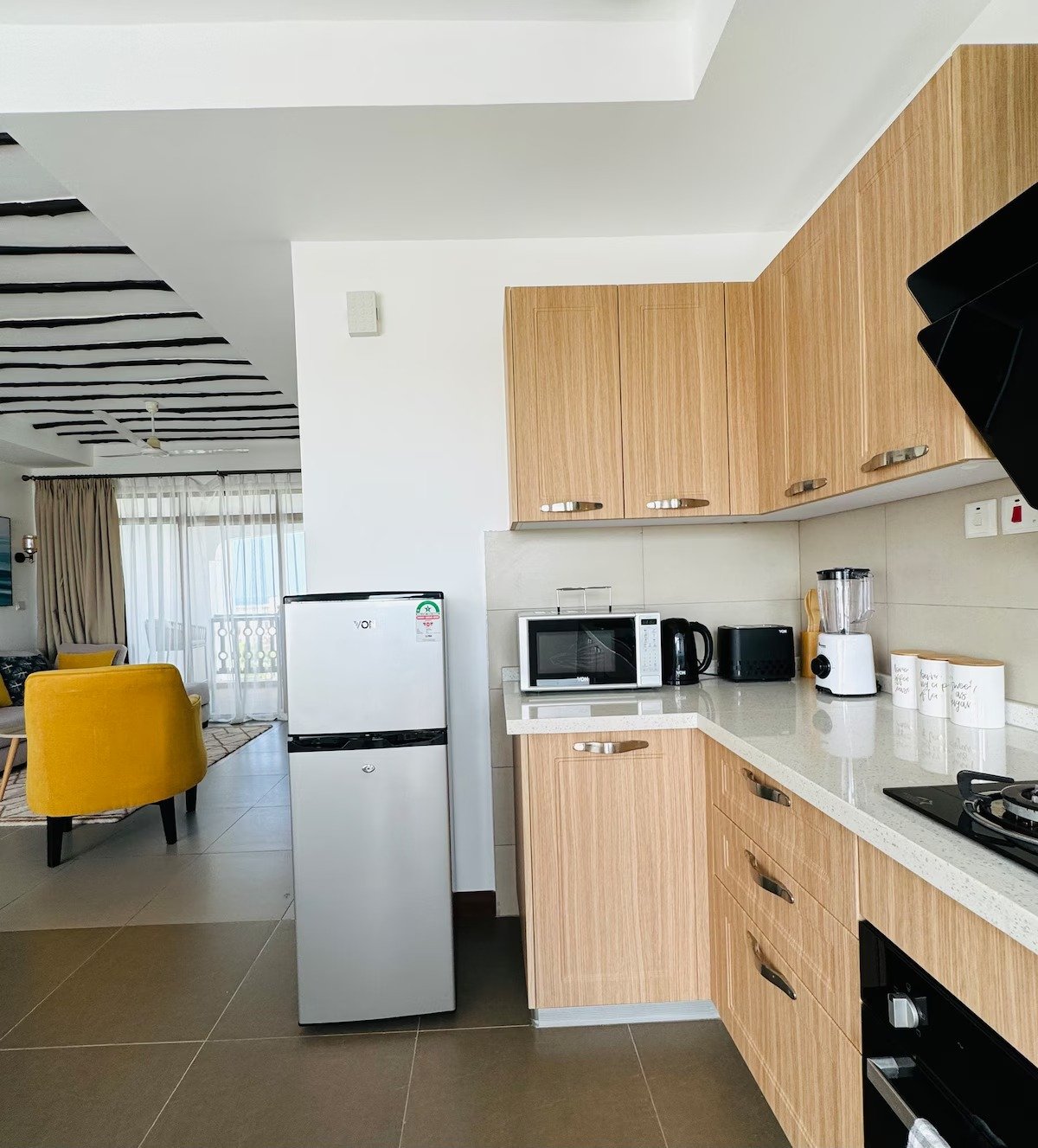 Fully Equipped Kitchen – perfect for cooking meals with a stove, fridge, microwave, and all utensils