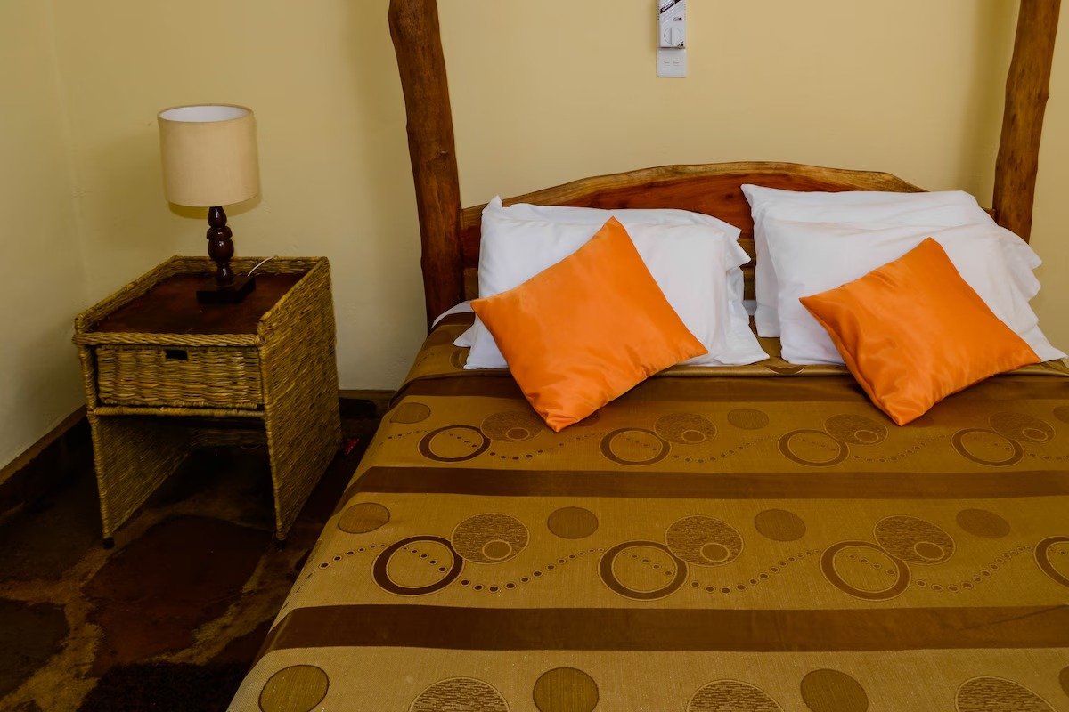 2 bedroom, one bath unit. One bedroom has a double bed while the other has two single beds.