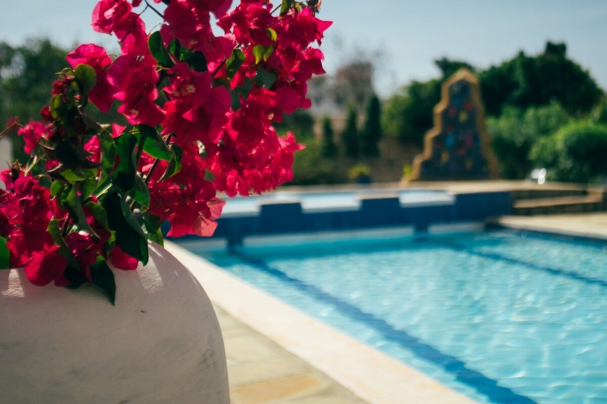 Shared swimming pool with a kibanda (covered seating area) and a dedicated kiddie pool—ideal for families
