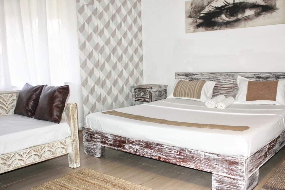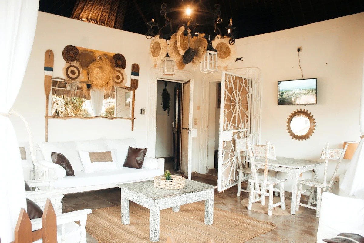 Welcome to our luxurious villa nested in the heart of Diani, a tropical paradise in the stunning Kenyan Coast. This charming and elegantly designed 2 bedroom offers the perfect blend of modern comfort and Swahili charm, making it an ideal retreat for families or a group of friends seeking a tranquil getaway. The villas open-concept layout invites you to unwind in style. It is in a compound with 7 other villas with a shared pool.