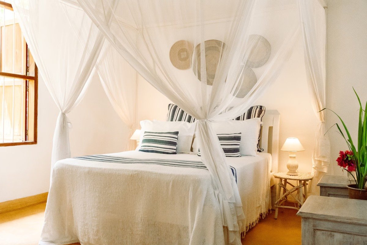 The enchanting Villa features a private garden, shared pool access, alfresco dining, private parking, wifi and security. The property was designed to embrace the tropical elements of the Kenyan coast and maximise air-flow with an inside/outside open plan design. The airy bedrooms have mosquito nets and ceiling fans, well appointed bathroom and fully equipped Terrazo Kitchen. Please note their is no TV in this property.