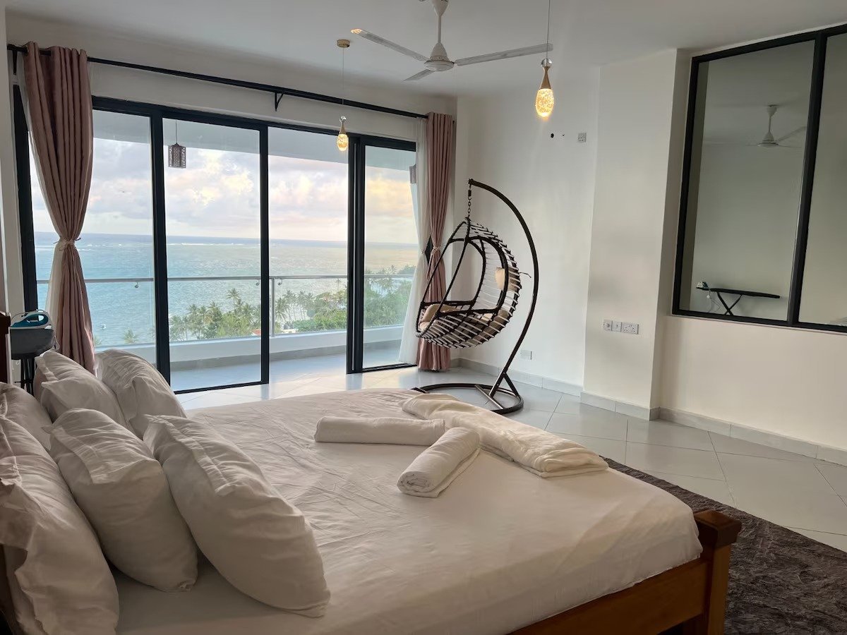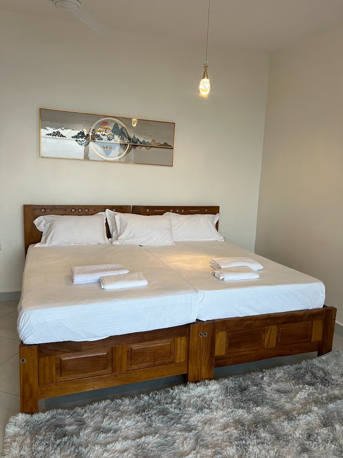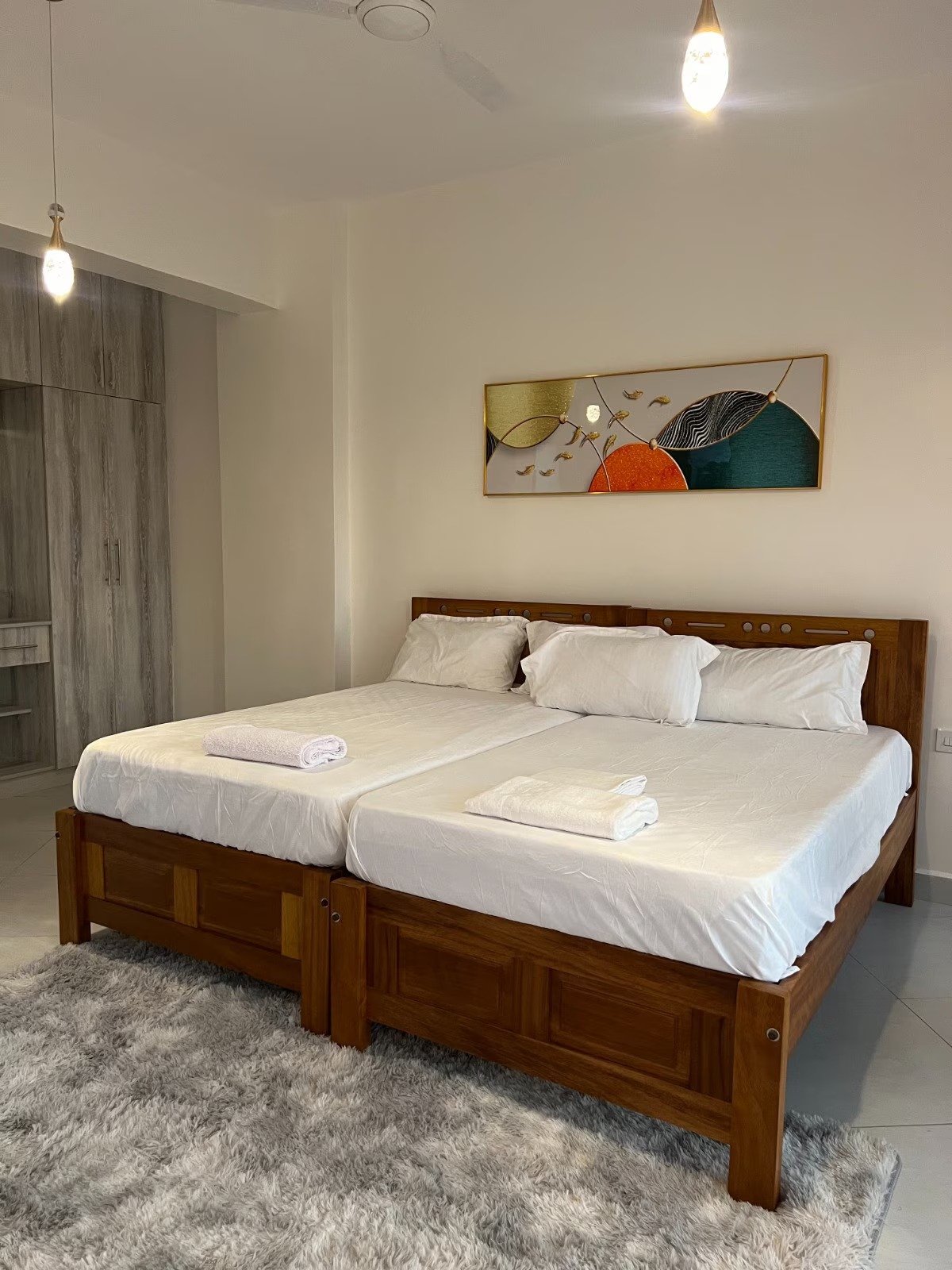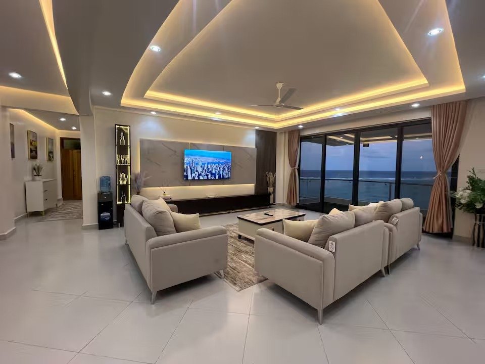 Our living room is fitted with modern sofas where you can relax and enjoy a movie on Netflix on a 65 inch flat screen tv.
