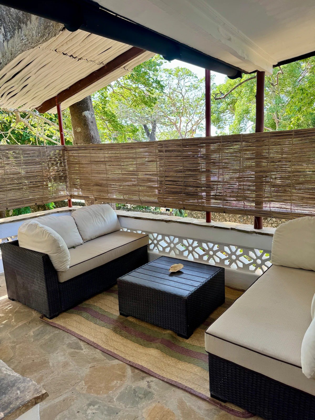 Private terrace with seating and garden views