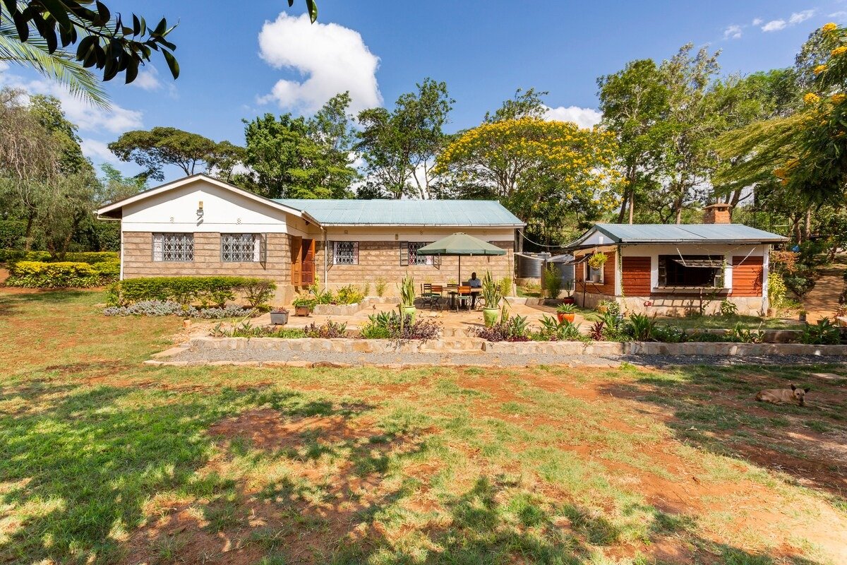 Escape to our hilltop farm oasis! Enjoy our home with an orchard and friendly animals, surrounded by breathtaking views of Lukenya & Ngong hills. Pick fresh fruit from the seasonal orchard or interact with the goats, chickens, & geese. Our spacious outdoor creates a warm atmosphere for relaxing with family and provide a peaceful retreat after exploring nearby hiking trails, & seasonal streams.
