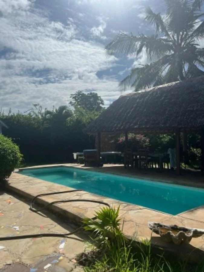 This property is a fully furnished three bedroom bungalow – Master bedroom ensuite – with two bathrooms and a capacity of 4 beds (2 queen sized and 2 single beds). It comes with an equipped kitchen, towels, linen and enjoys housekeeping three days a week. The property has wifi, a length pool, gazebo and spacious veranda.