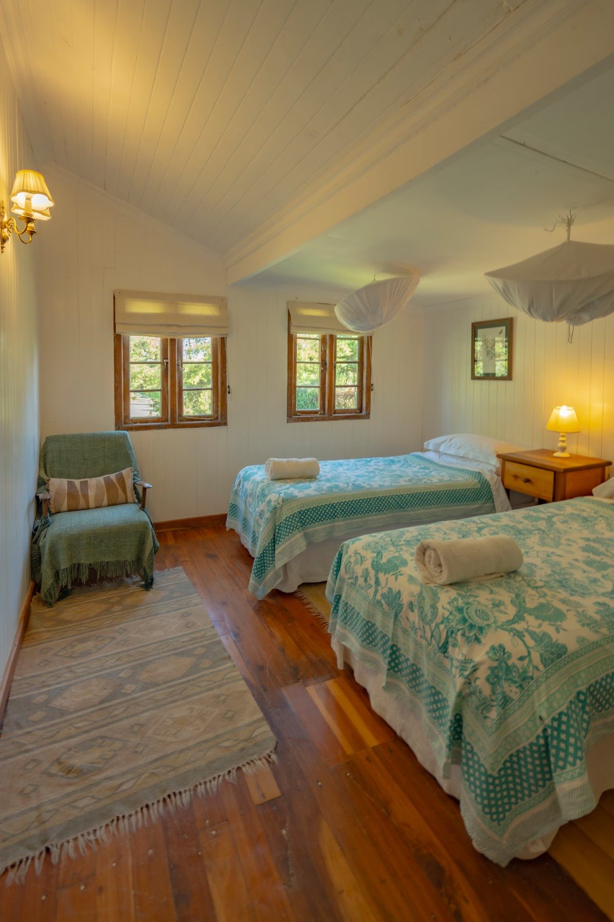 This charming old house has 3 bedrooms, kitchen, veranda and a sitting area with a fireplace. A private garden surrounds the house. One room is a double en suite, the other 2 rooms share a bathroom. These 2 rooms can be set up as either twin or double.