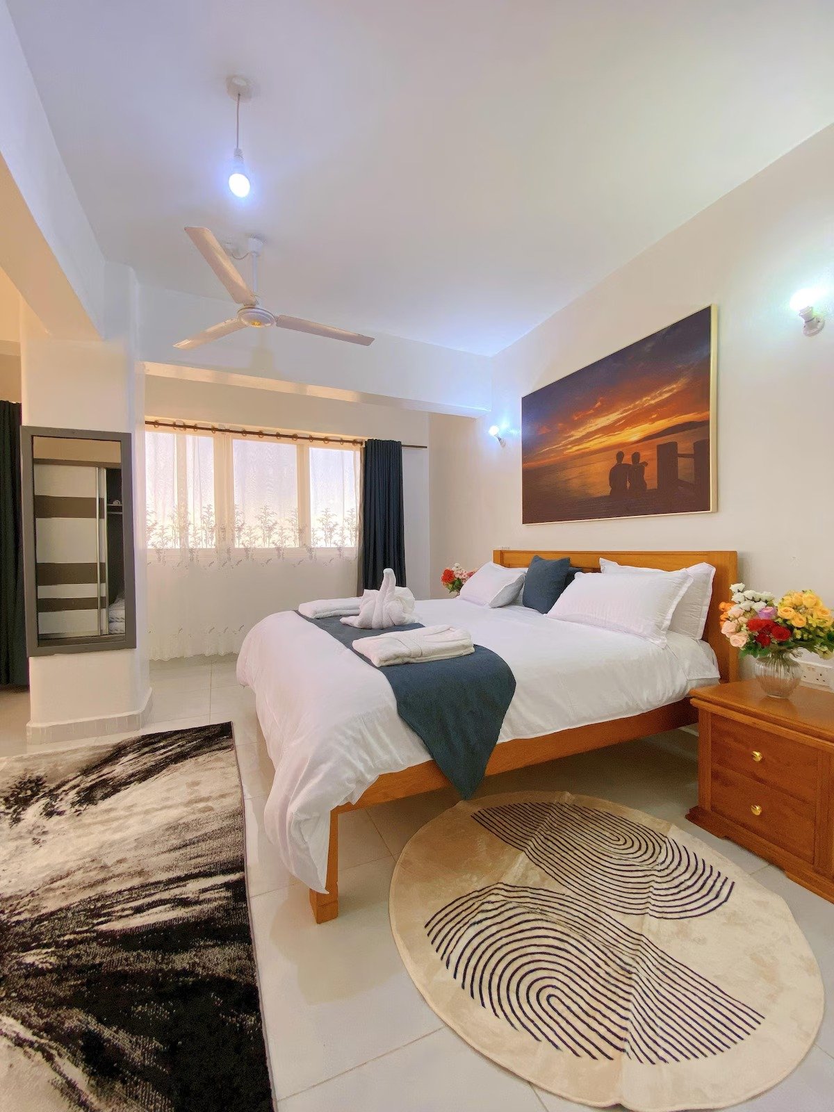 Your family will be close to everything when you stay at this centrally-located place. The place is 2km to nyali ,very close to shopping malls, hotels and beach. It’s just a few metres to the main Mombasa -Malindi road.Its a 3 bedroom penthouse, 2 bathrooms,spacious ,with high end furnishings,modern,open kitchen,with a roof top swimming pool ,high speed lift and a washing machine for your convenience. Enjoy breathtaking city and beach views from the balcony. There’s ample parking and security