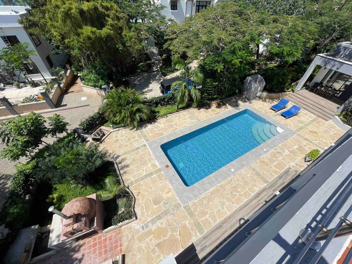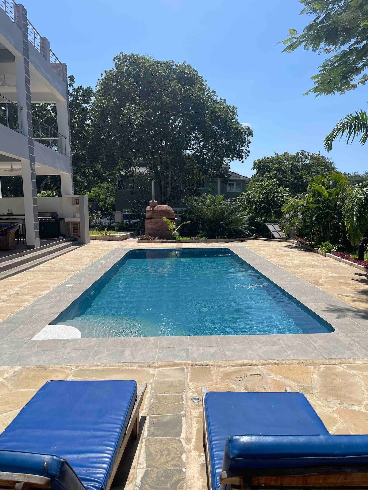Bring the whole family to this great place with lots of room for fun. Located one lot back from the beach this incredible house and pool will meet all your needs. Cook inside with a fully equipped kitchen or outside on the bbq or make a pizza in the pizza oven. Have a swim in the pool or just sit, relax and enjoy the sea breeze. You can go for a walk and a swim down at the beach. Security will be there to greet you and let you back into the compound.