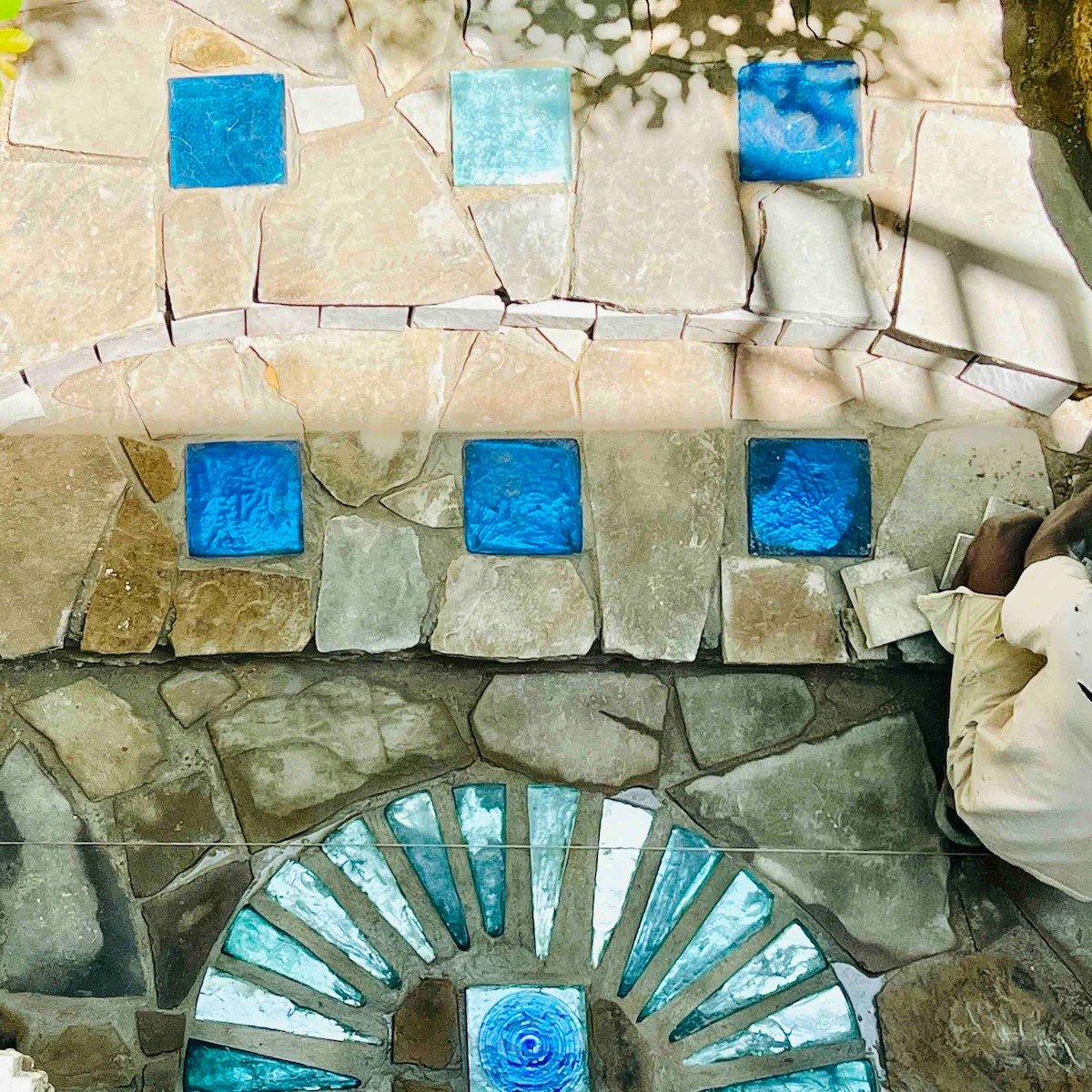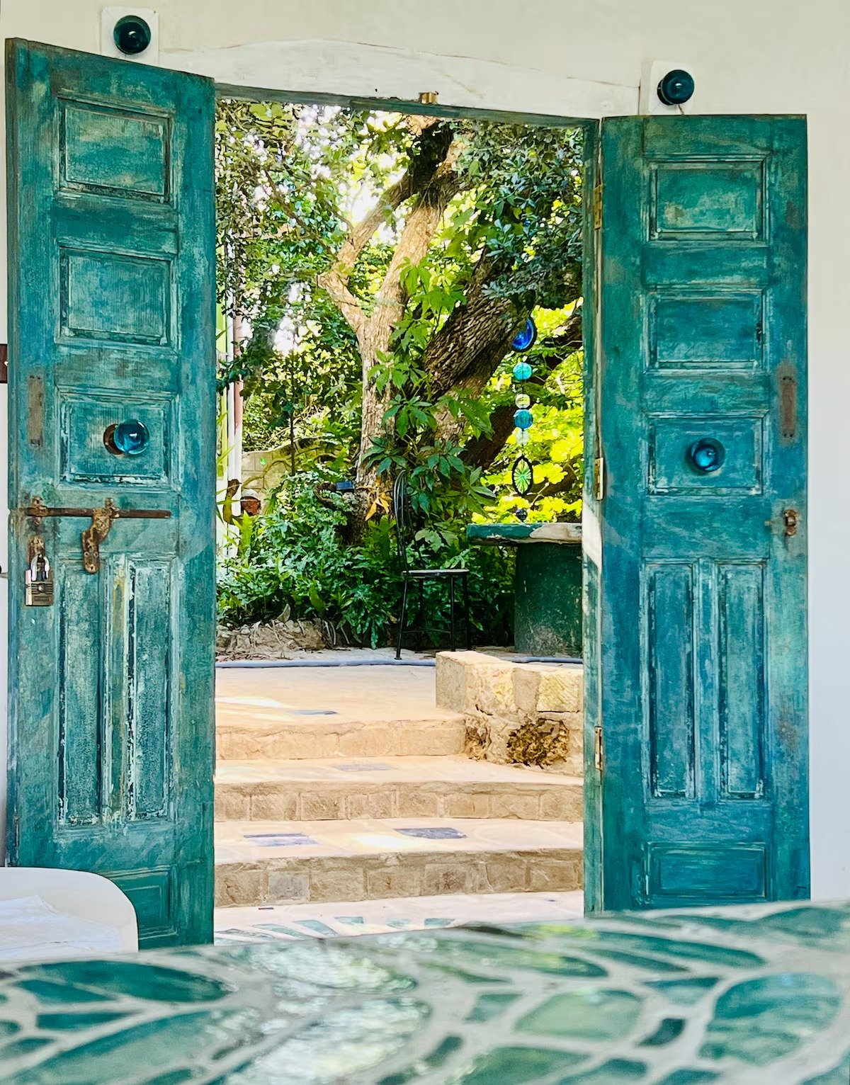 A Lamu style refurb with the cool finish of an Arabic villa, nestled in original coastal forest, with some trees so rare only a few examples exist in the world. The house abounds with dalle de verre art – in the stairwell & bathrooms, handmade using recycled waste glass in Nairobi.