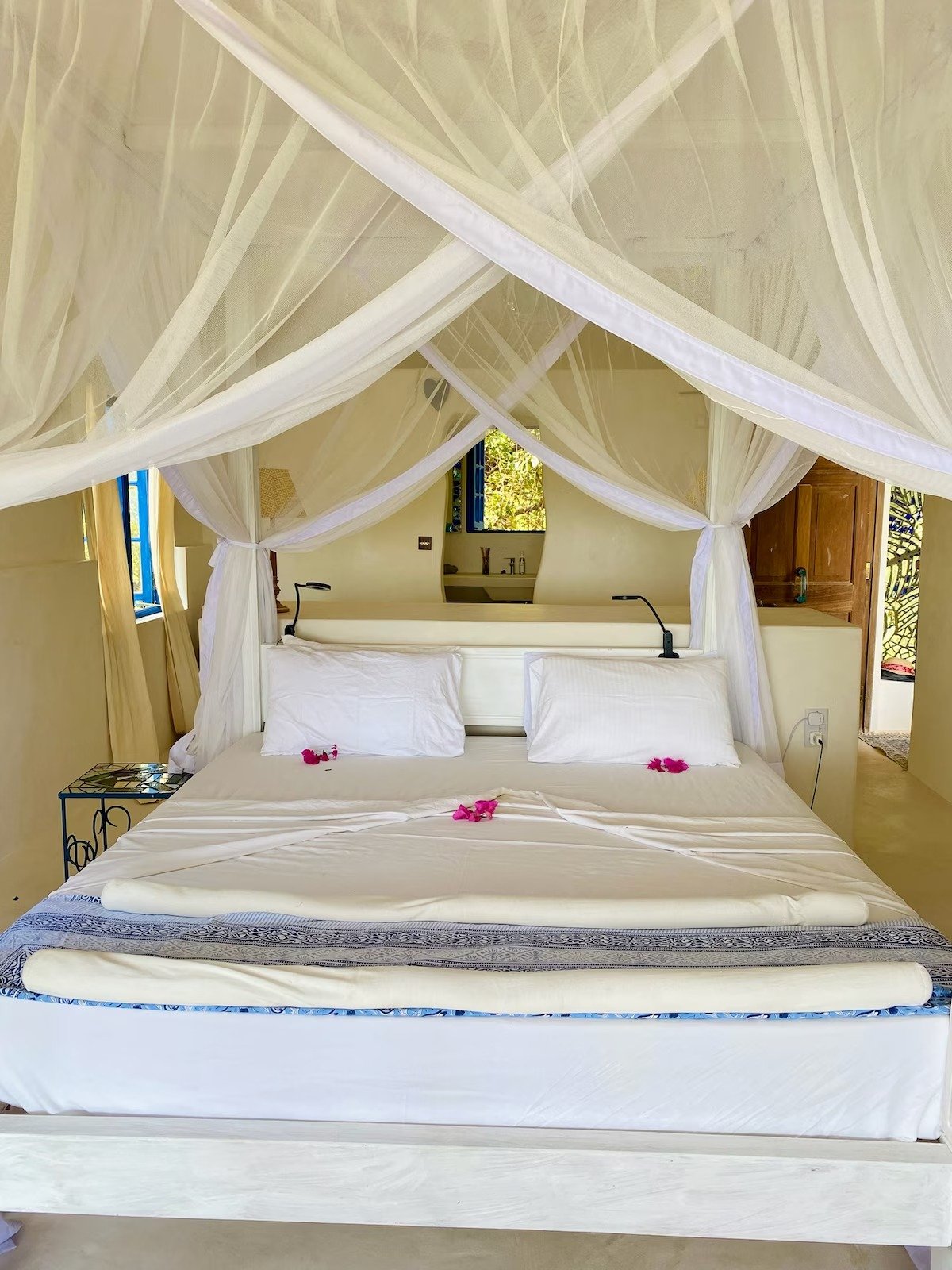 All bedrooms have mosquito nets, fans, and ensuite bathrooms.