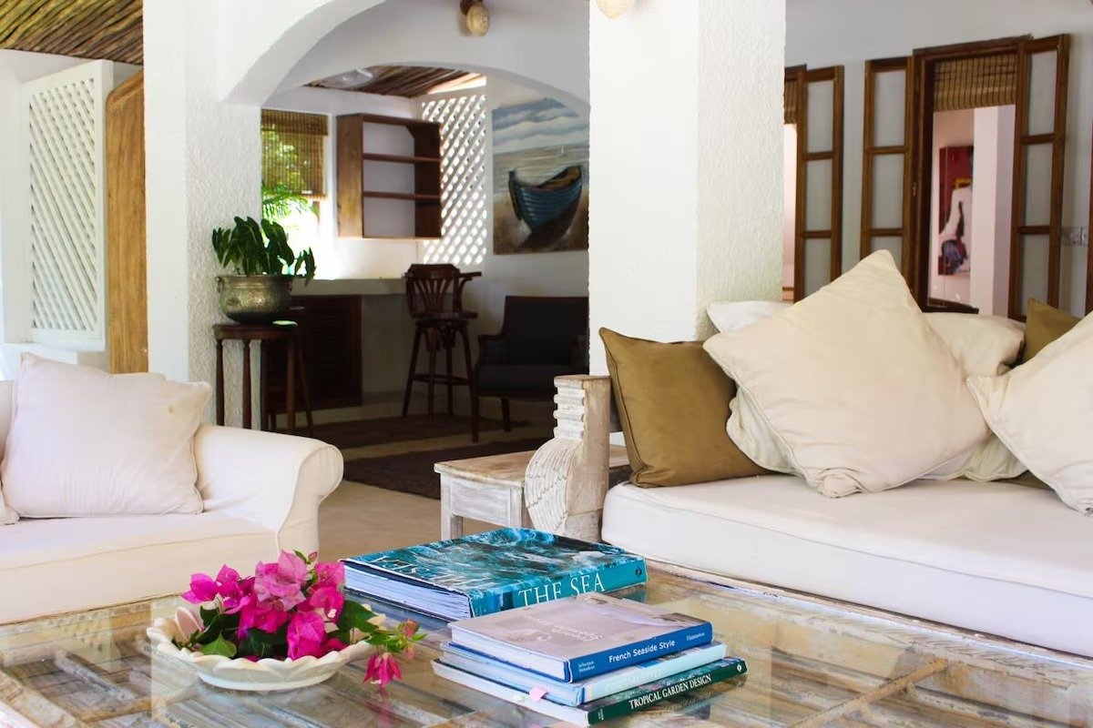 A Chic tastefully furnished home , designed around a courtyard and set in a beautiful tropical palmed garden.