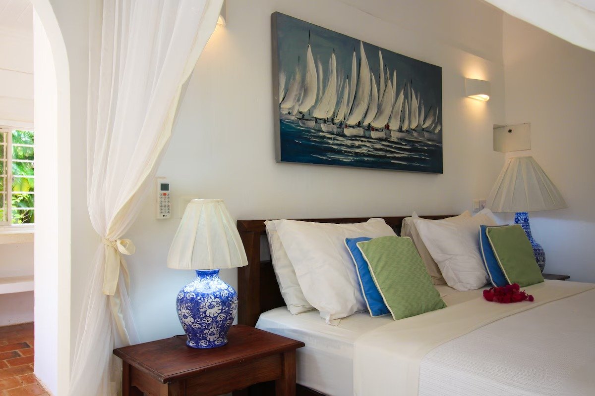 The Cottage sleeps 8 in 4 comfortable double ensuite bedrooms, two doubles upstairs the master bedroom upstairs opens out onto a private veranda overlooking the pool below and the two ground level rooms look over the internal courtyard (one room situated in the courtyard section can revert to a twin by request.)