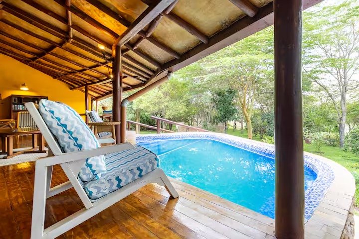 For adventure and relaxation, the villa offers horse riding, a large balcony with sweeping views, and a nature trail with bird feeders for tranquil walks. After a day of exploring, unwind in the bathtub or take in the sunset from one of four outdoor sitting areas.