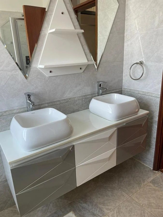 Tt’s four bedroom house all ensuite with a family room, detached SQ. The living room comes with a fireplace, a dining area, fitted kitchen with a pantry, a TV room , home office , staff quarters, a very large master bedroom with his&hers sink, a jacuzzi, a shower cubicle and a large balcony.