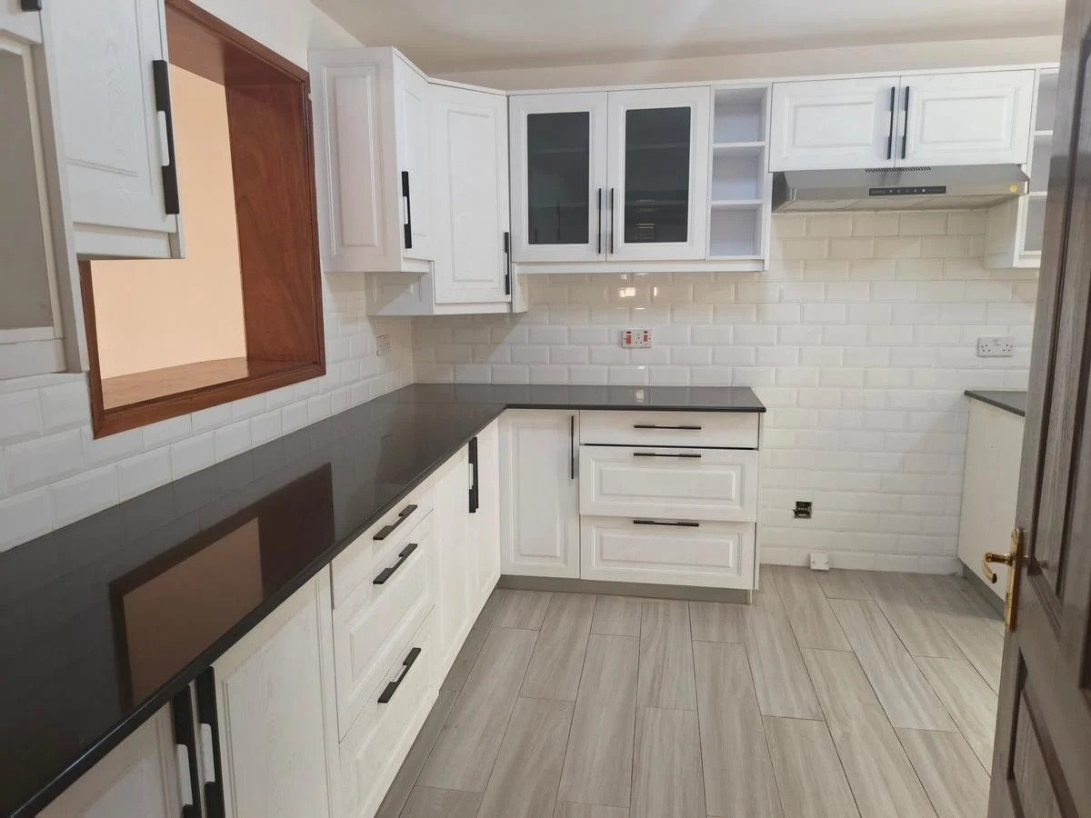 Semi open plan kitchen with a pantry