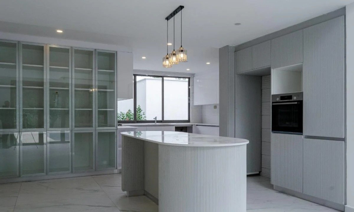 This elegant three-level residence offers luxurious living with five spacious en-suite bedrooms, each thoughtfully designed for comfort and style. A grand, light-filled entrance hall sets the tone for refined interiors, which include a spacious lounge and dining area connected by a double-sided fireplace. The home features two fully fitted kitchens with a pantry and dedicated laundry area, along with a private covered terrace overlooking manicured gardens. Additional amenities include a study room, entertainment lounge, and a rooftop area perfect for barbecues with stunning golf course views. A private swimming pool adds a touch of resort-style living, while staff quarters for two and secure parking for four vehicles complete this exceptional offering.