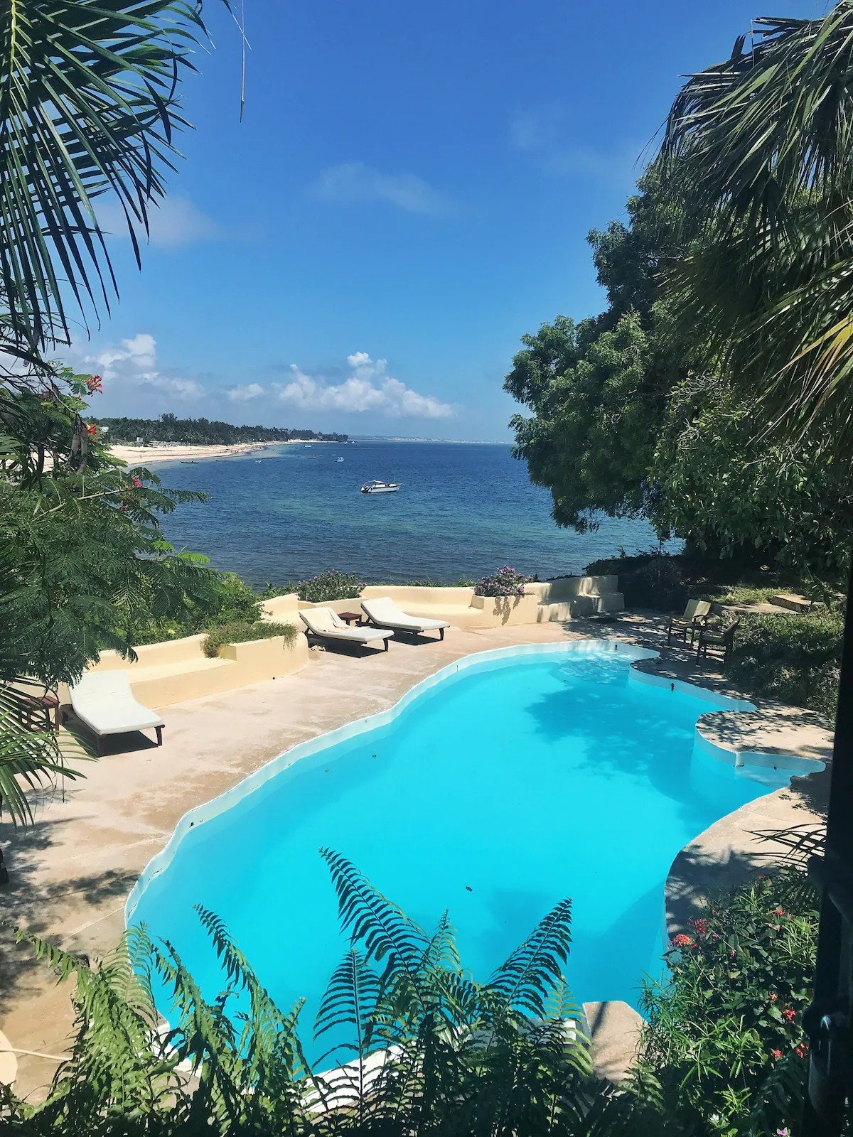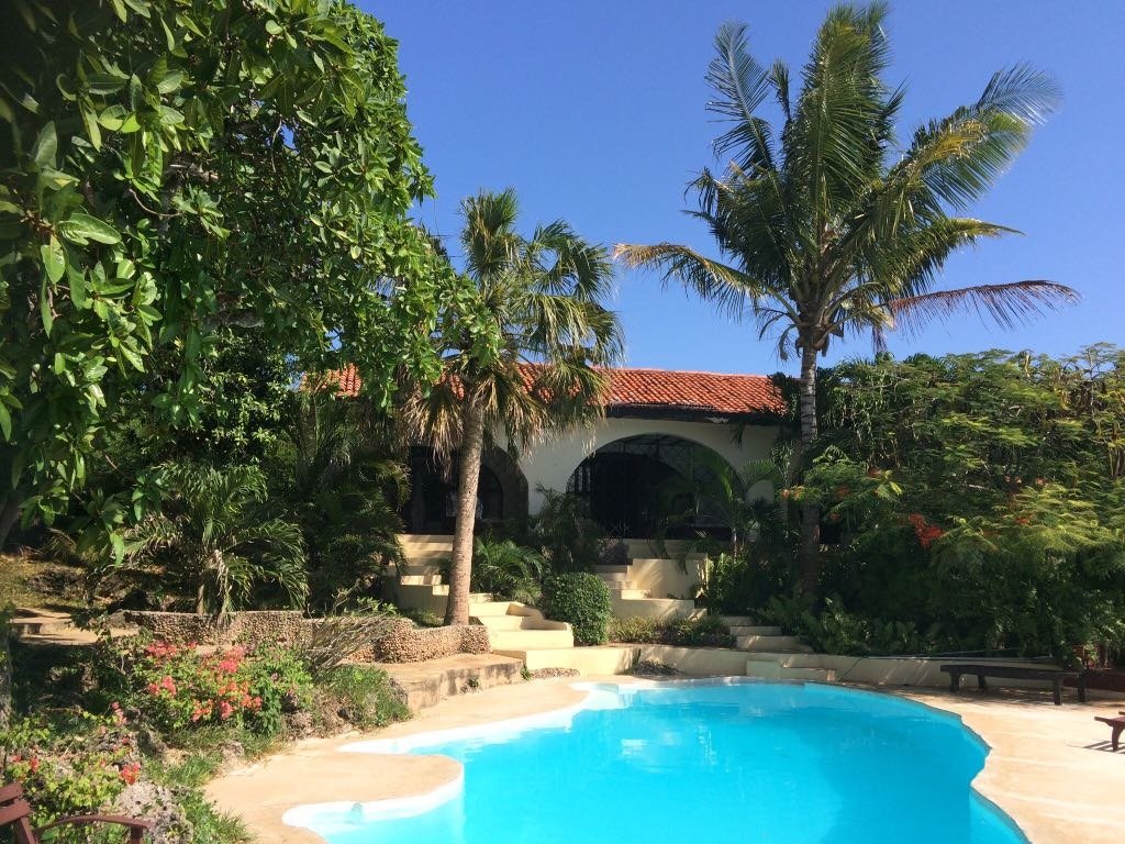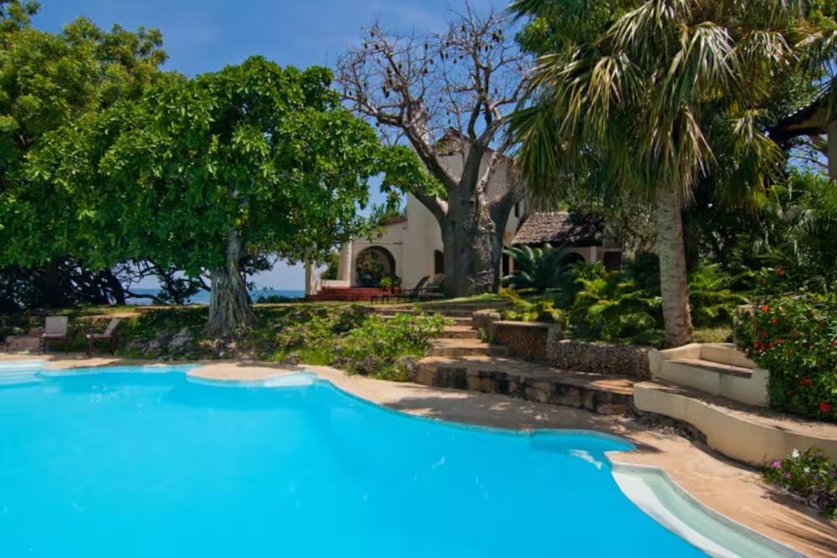 Lamu doors lead into two acres of landscaped tropical garden with its 300 year old baobab, profusion of bourganvillea, ferns, palms and desert roses and in its midst, the enticing blue waters of the swimming pool… and a hidden path to the beach.
