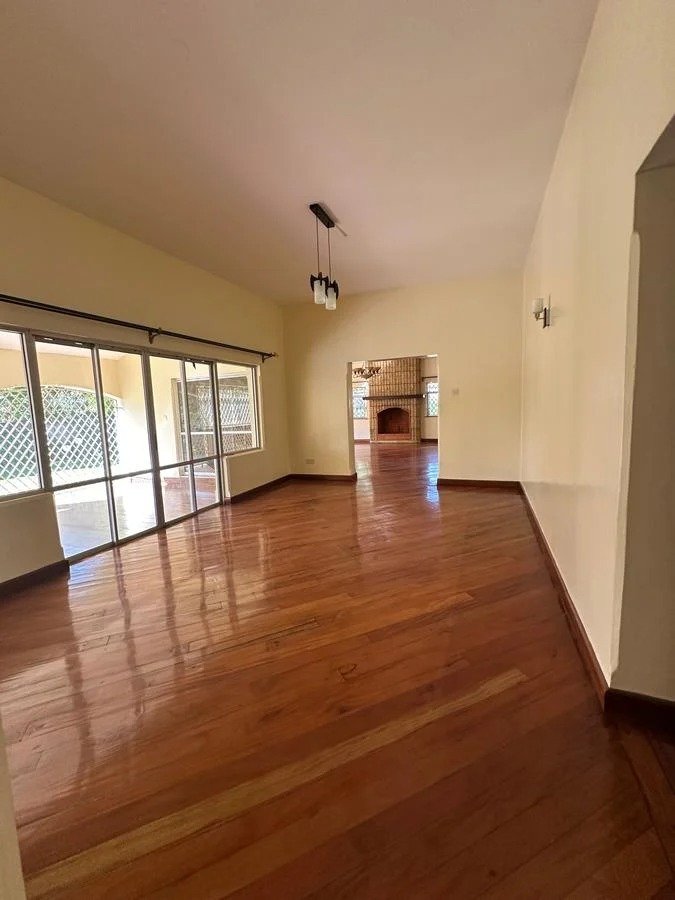 Spacious living room with a fireplace.