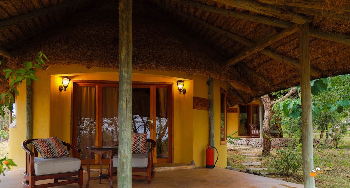 The six thatched rondavales elegantly designed using natural earthly colours, luxury finishes and a dash of African flair. Features include kitchenette a private wooden verandah with loungers Lukenya Hill view.