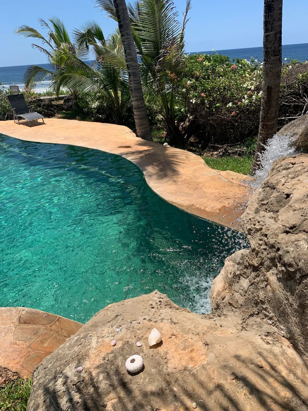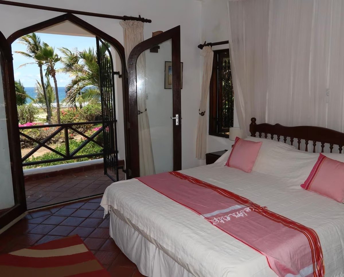 Beautiful Swahili house set in tropical gardens with panoramic views over the Indian Ocean. Own beach access and private swimming pool, near to shops and sports facilities.