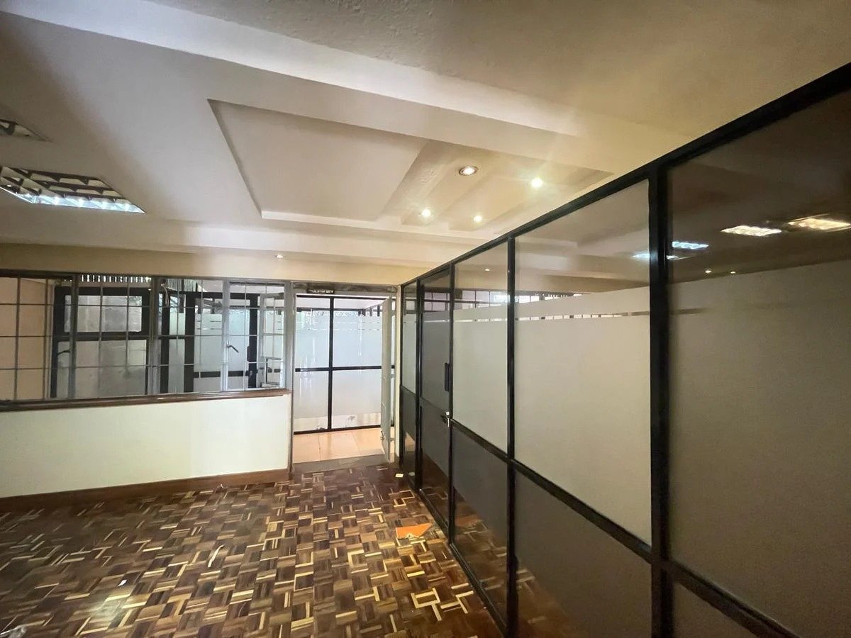Kilimani commercial property available for office use, approximately 3,000 square feet. The space is already partitioned into 9 rooms and a reception area, making it ideal for corporate offices, NGOs, or other professional uses. The property offers ample parking and is equipped with a backup generator.