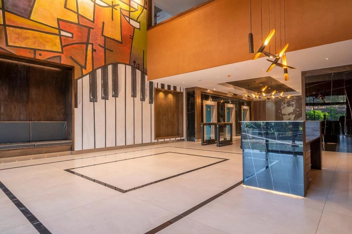Amenities include standby generator, borehole, 5 high-speed passenger elevators plus 2 service/VIP elevators, 24-hour security and CCTV surveillance, electric fence, and fire alarm and detection system.