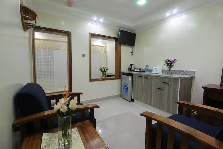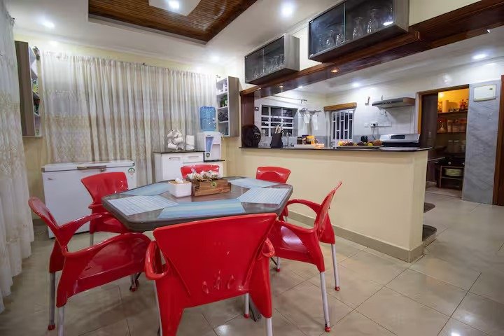 The facility boasts one indoor and one outdoor shared kitchen utilised by our on-call chef, who is at your service for food requests at an extra charge. The outdoor kitchen is available for grilling, roasting, and barbecuing.