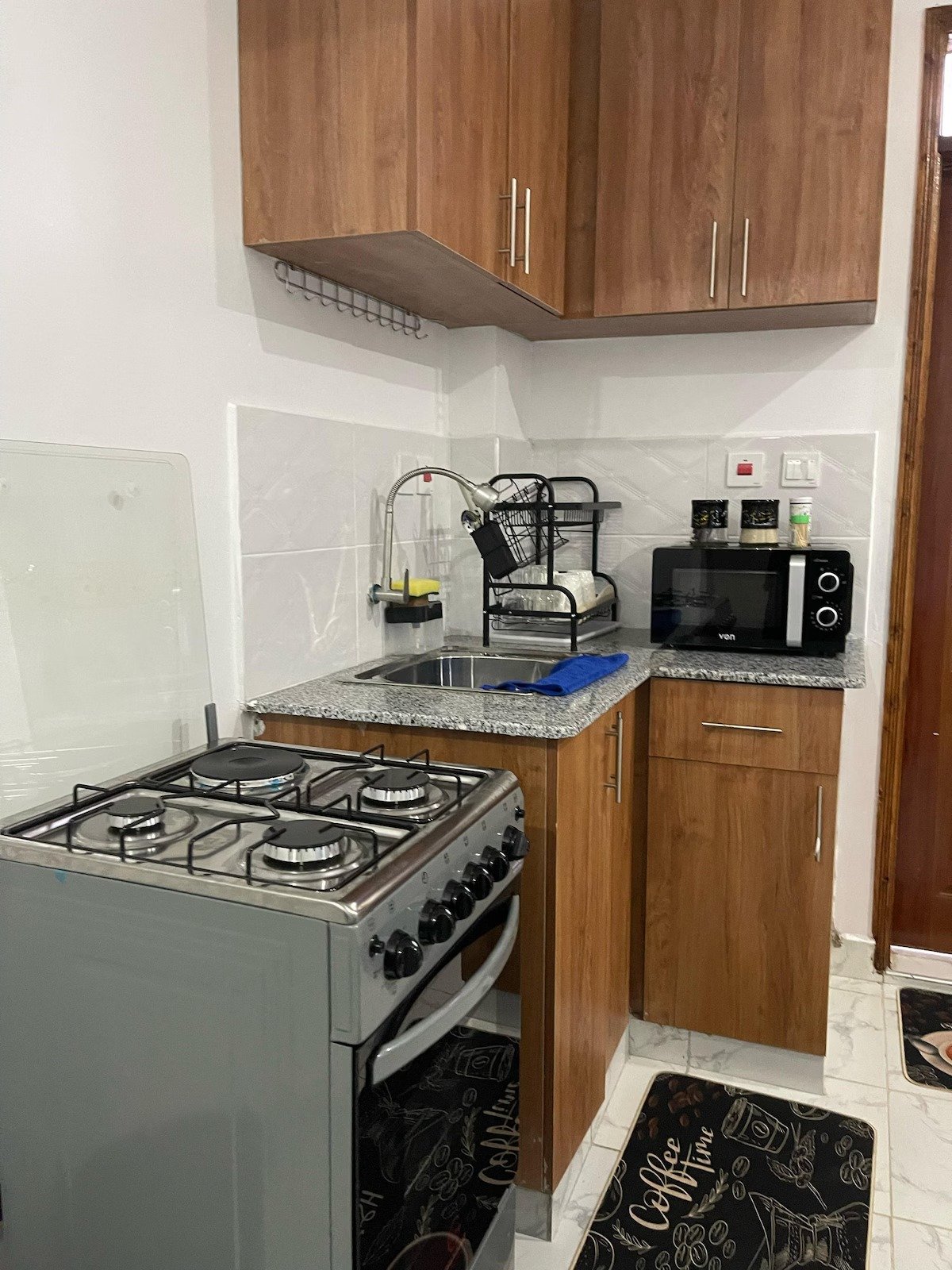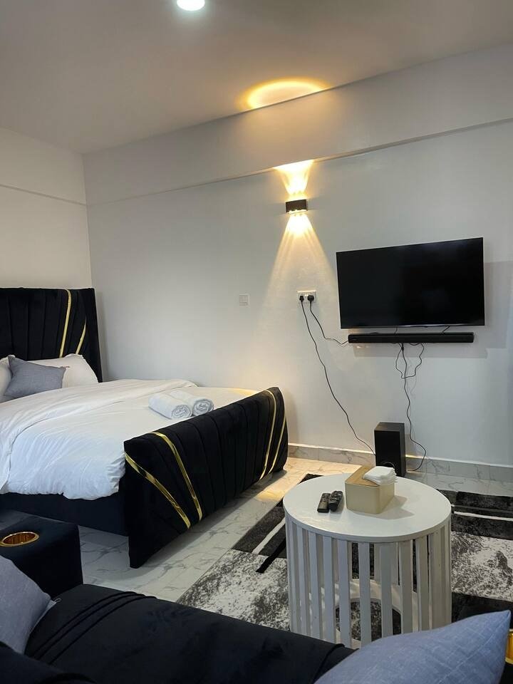 Enjoy a cozy, fully furnished studio, this space offers comfort, privacy, and convenience.Includes: Comfy bed, WiFi, Kitchenette,Private bathroom, hot shower,Free parking & 24-hour security and Elevator access, Walking distance to supermarkets, eateries, entertainment spots, close to International Airport and Hospital,Check-in: Until 11:00 PM Check-out: 10:00 AM – 11:00 AM. We offer airport transfer at a fee