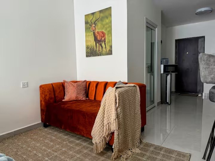 Experience comfort and convenience in our chic minimal studio! Perfect for layovers and getaways, it’s 8.7km to JKIA, 3.9km to the SGR and 3.3km to the expressway linking you to Westlands (19km). Enjoy shopping and dining at Gateway Mall (1.8km). Accessible via high-speed lift, your space features a cozy queen bed, dedicated workspace, modern kitchen and high-speed Wi-Fi. You’re welcome to access the gym on-site to stay active during your stay. Savor complimentary Kenyan coffee and tea. Karibu!