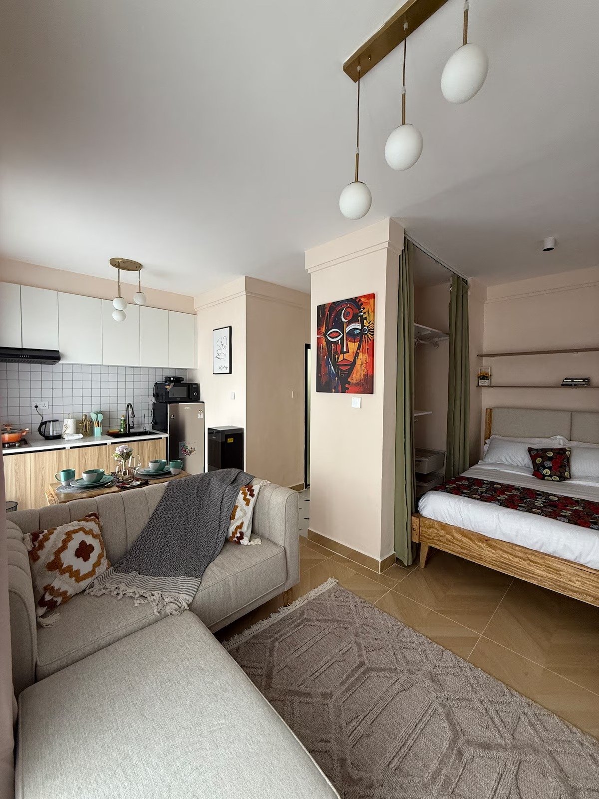 Welcome to your serene escape in apartments in Syokimau! Just 15 minutes from JKIA and SGR, this stylish studio apartment blends modern elegance with cozy comfort. Enjoy stunning Nairobi National Park views from your balcony, high-speed Wi-Fi, a fully equipped kitchen, and access to a pool and gym. Perfect for business travelers, adventurers, or locals seeking a tranquil getaway near Nairobi’s vibrant attractions. Book now for an unforgettable stay.