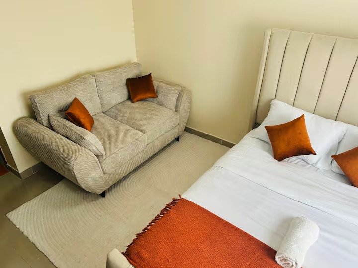 Escape to our tranquil oasis, nestled in a peaceful neighborhood, where calmness and relaxation await! Our spacious apartment on the 4th floor (elevator access for convenience) is your perfect haven. Enjoy a home away from home experience, complete with all the amenities you need. With attention to detail, our apartment boasts sturdy door furniture and a thoughtfully designed interior. Room features a comfy bed perfect for couples or singles, a tv for entertainment and relaxation, well equiped kitchenette for yummy yummies and more facilities.