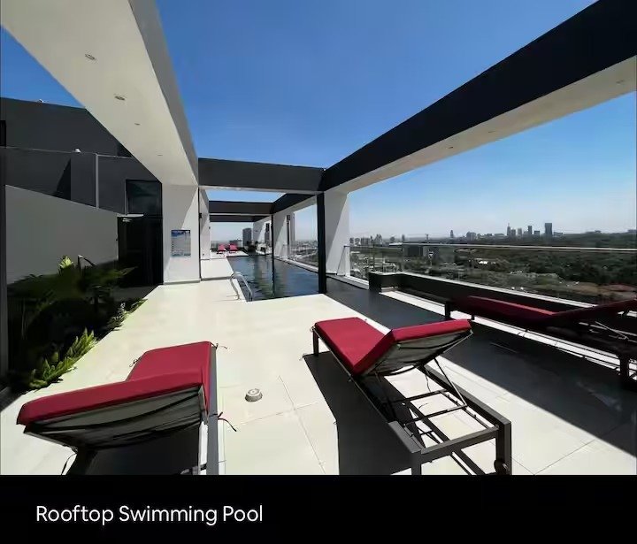 *Rooftop swimming pool with skyline views and sunset vibes