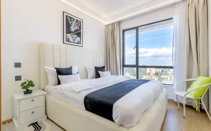 This stylish place to stay is perfect for 2 people, It’s super cozy with a nice view of Ngong hills. On your stay you are allowed to use the heated swimming pool, gym and kids play ground at no cost. The host is ready to serve you with due respect.
